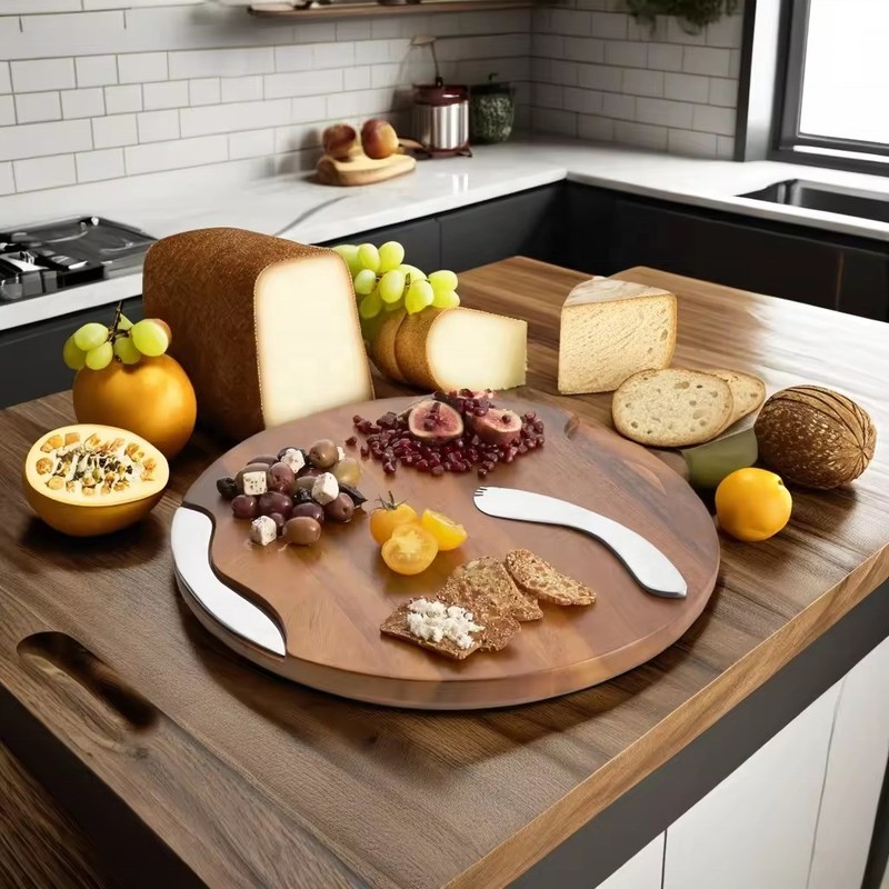 Logo personalizzato Acceptabile Tavola di taglio di acacia a scanalatura rotonda con coltello e diffusore