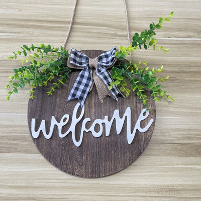 Porta d'ingresso in legno di benvenuto Targa murale per la decorazione domestica Forma rotonda su misura
