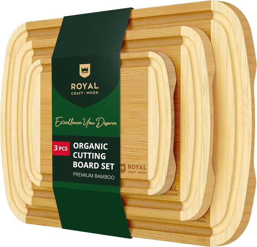 Set di tavola da taglio di legno di bambù rettangolare con accessori da cucina inclusi